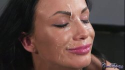Пухленький ботан получили шанс кончить на лицо красивой шатенке